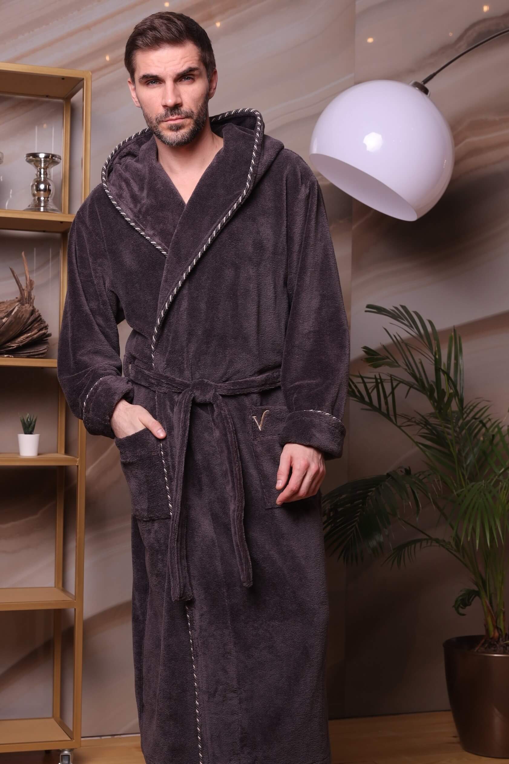 Мужской бамбуковый халат с капюшоном Zevs (Антрацит)